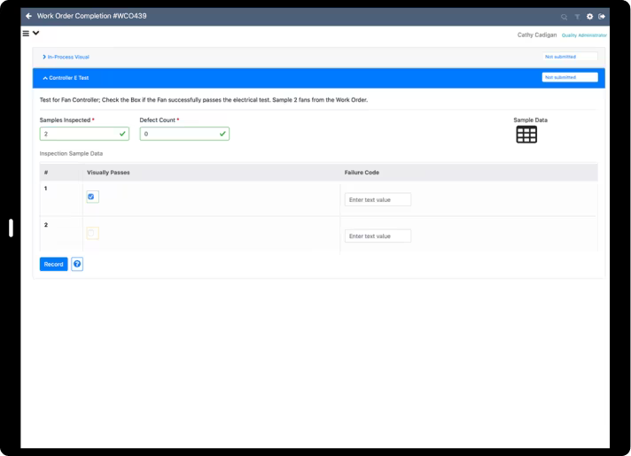 NetSuite’s tablet interface provides a convenient way to capture and process test data directly from the shop floor or receiving dock. The mobile collection interface is designed to deliver all the information a quality engineer needs to efficiently and accurately gather and analyze results. With the tablet, engineers can easily perform inspections, review standards, record outcomes and submit data for analysis directly from the work area — providing real-time feedback and instant access to testing outcomes.