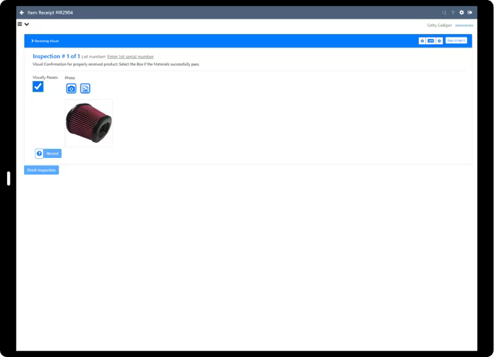 Tests associated with a particular item can be performed on demand, upon receipt and during the manufacturing process. Because tests have already been defined, they are easily attached to an item or operation to ensure compliance with quality-control procedures. Items that fail an inspection can be moved to a hold location for further processing.